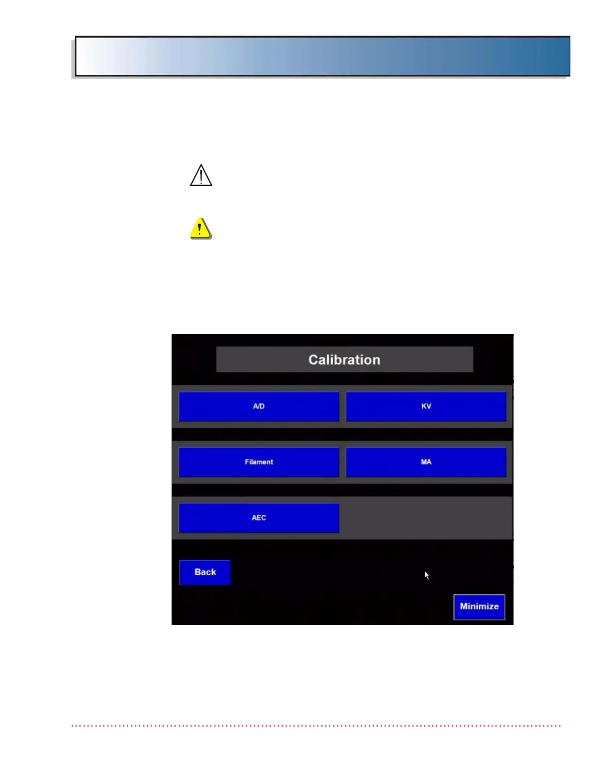 WARNING! The following calibration procedures