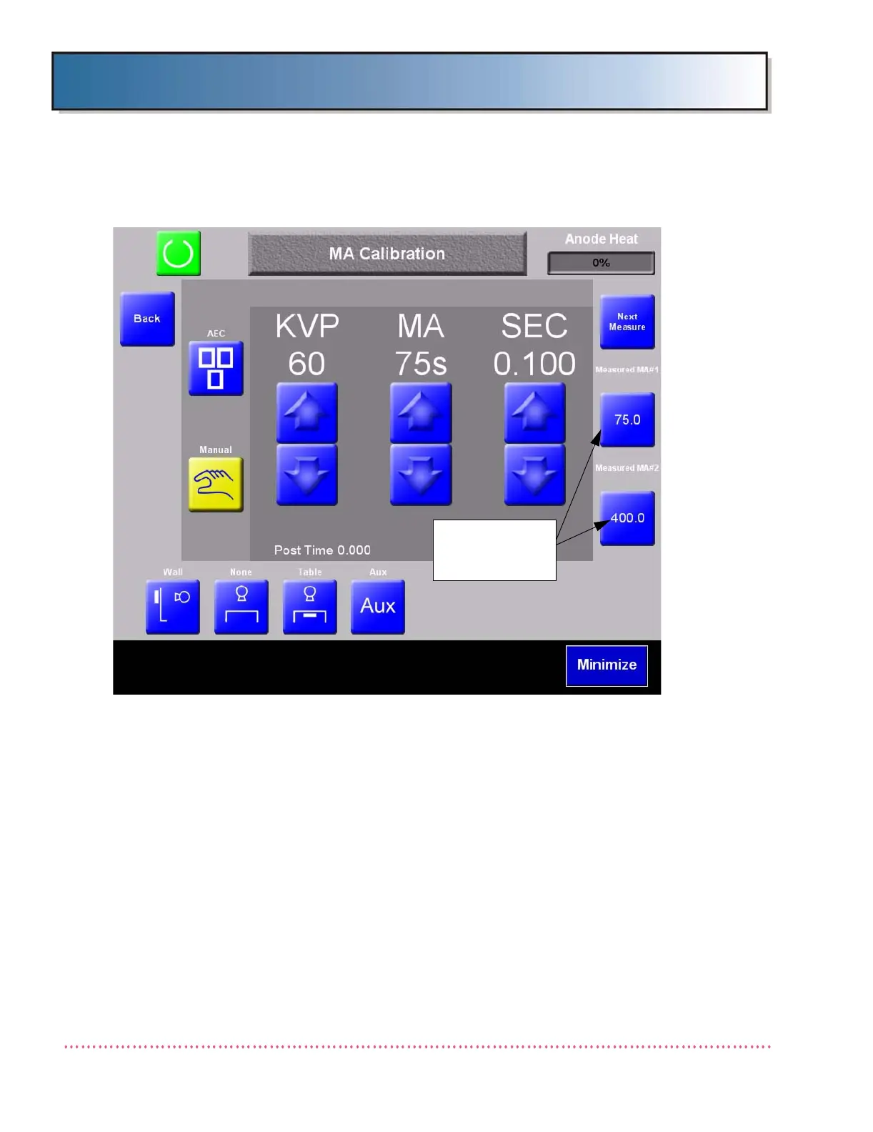 3. Take an exposure at the setting indicated in the MA Calibration Screen