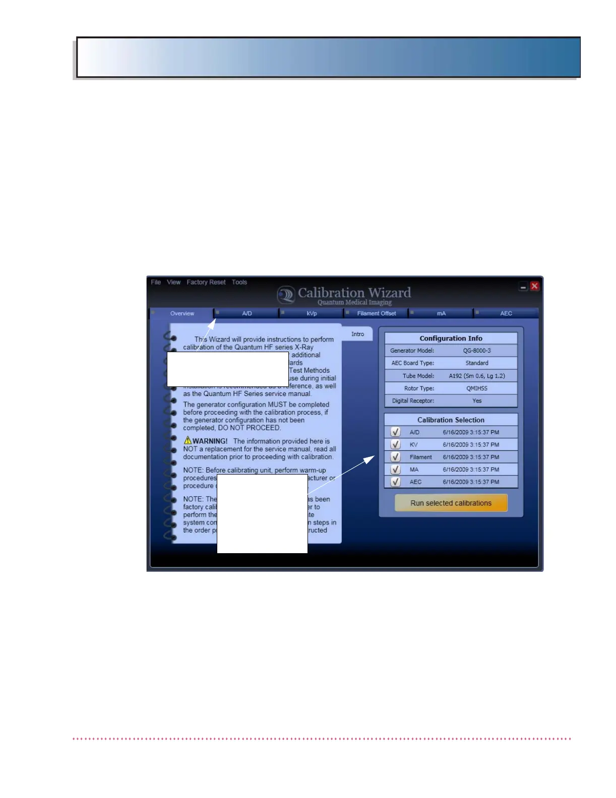 unfamiliar with this equipment. The "Calibration Selection" pane, shown