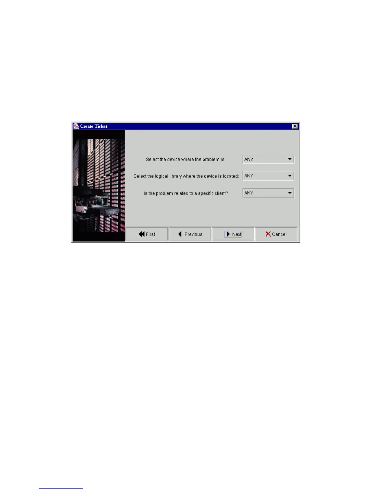 The Ticket Device, Library, and Client dialog selects the problematic device, details the location of the