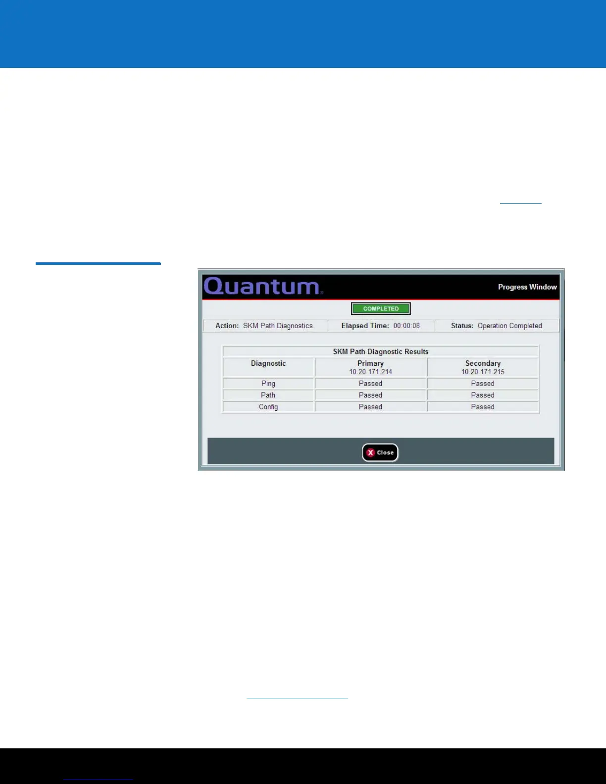 displayed in a progress window after the diagnostics completes (see