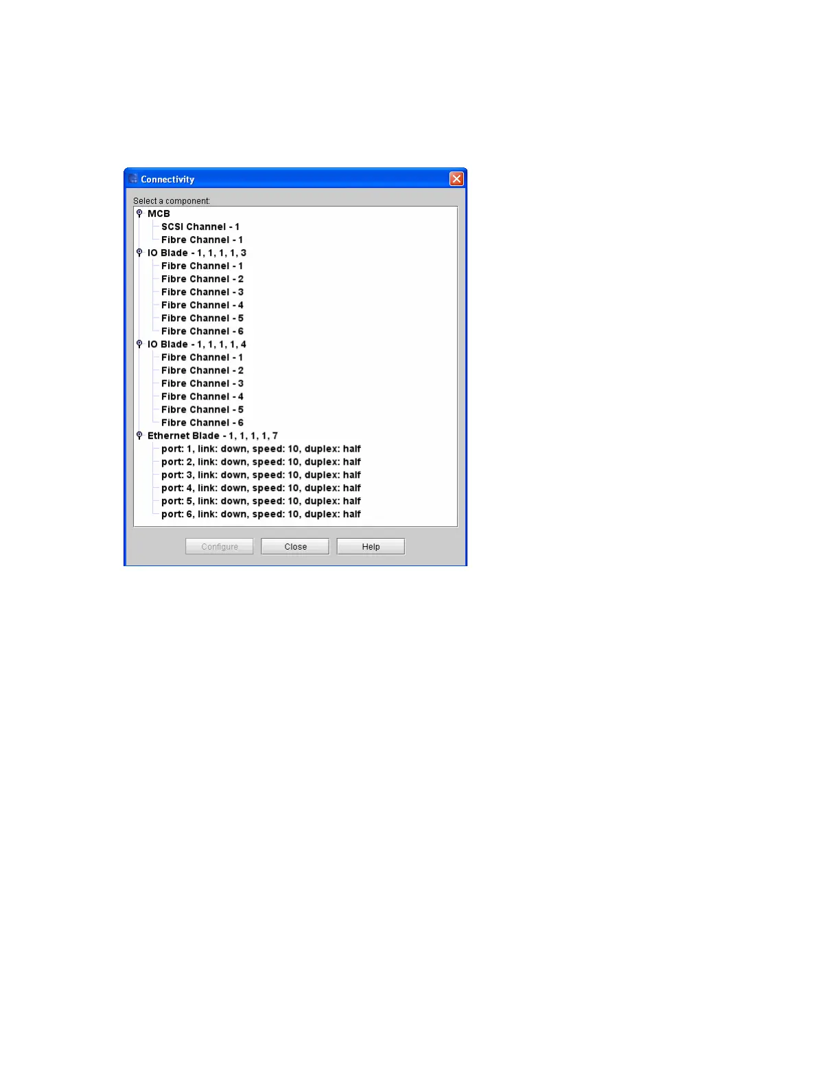 The Connectivity dialog box appears. All components that provide FC and SCSI ports show in the