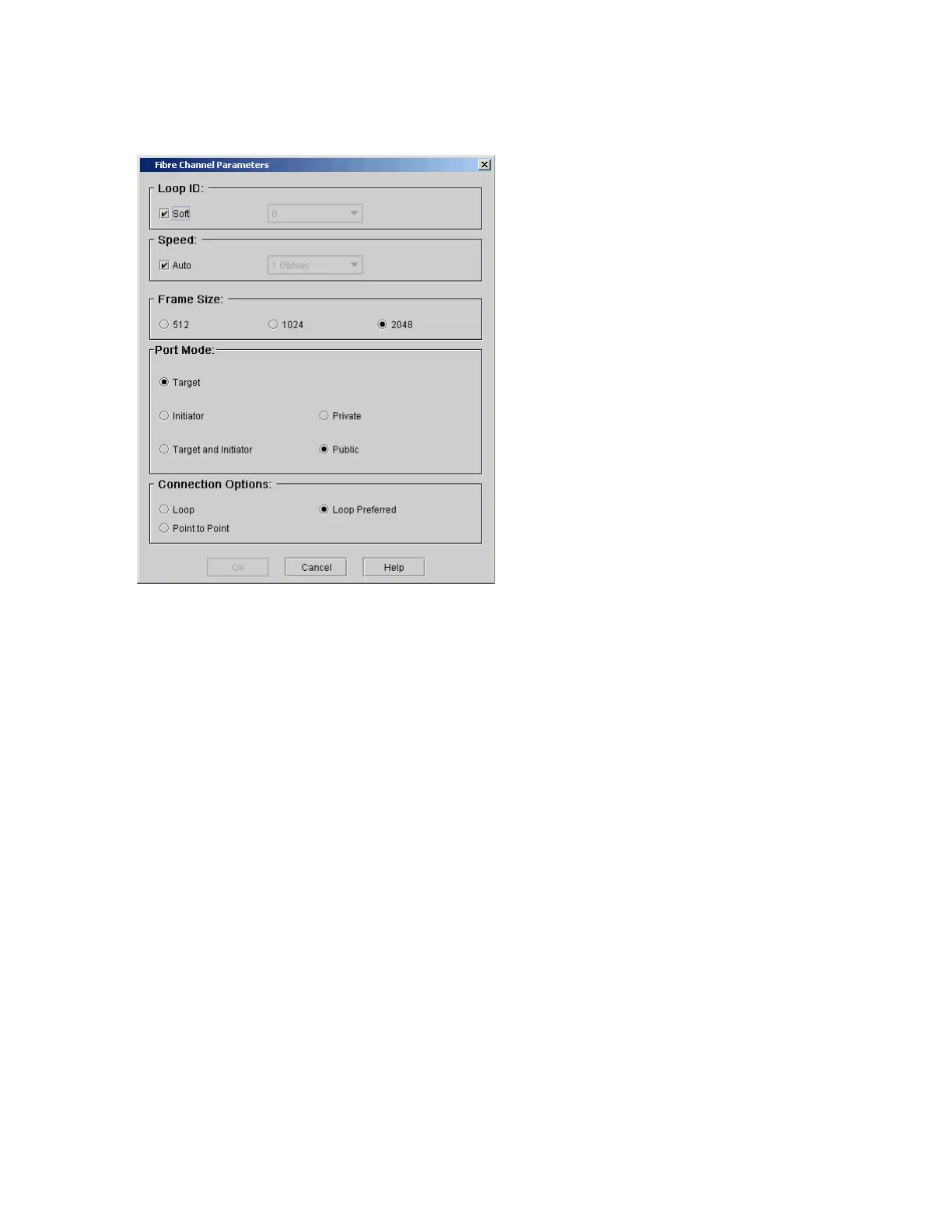 figure above shows an FC port configured for target mode and a loop preferred connection.