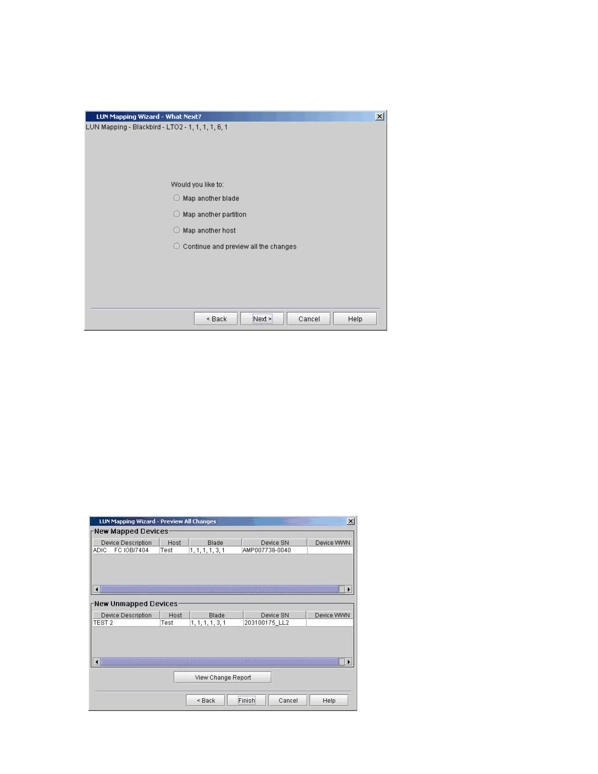 The LUN Mapping Wizard – Preview All Changes dialog box appears.