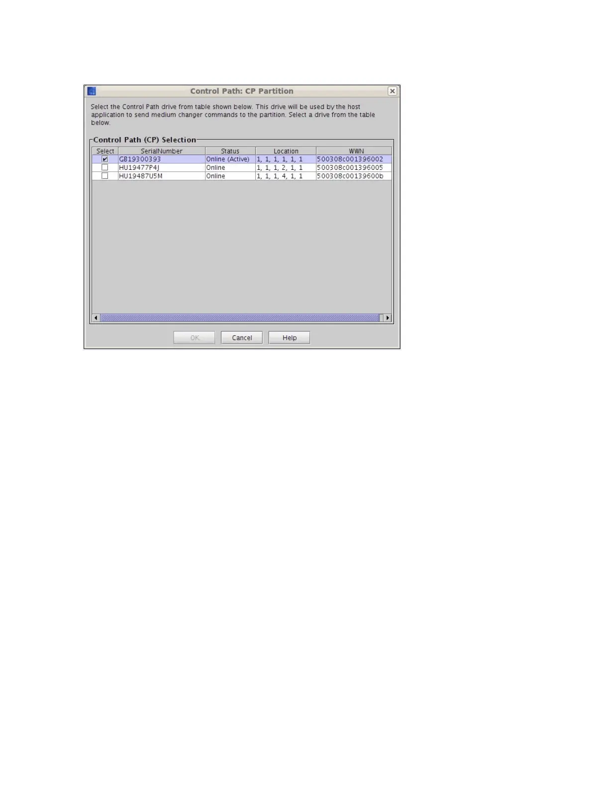 4 In the CP Drive Selection field, select the drive you want to configure as the control path.