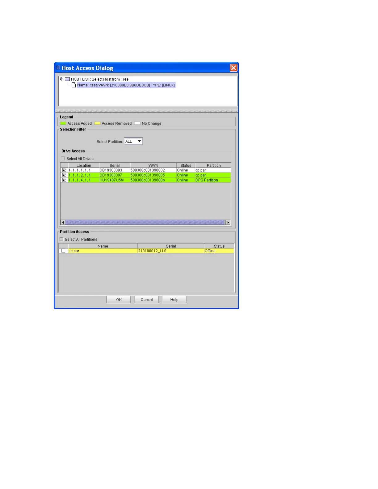 This action filters the drives in the Drive Access table and show only those drives that belong to the