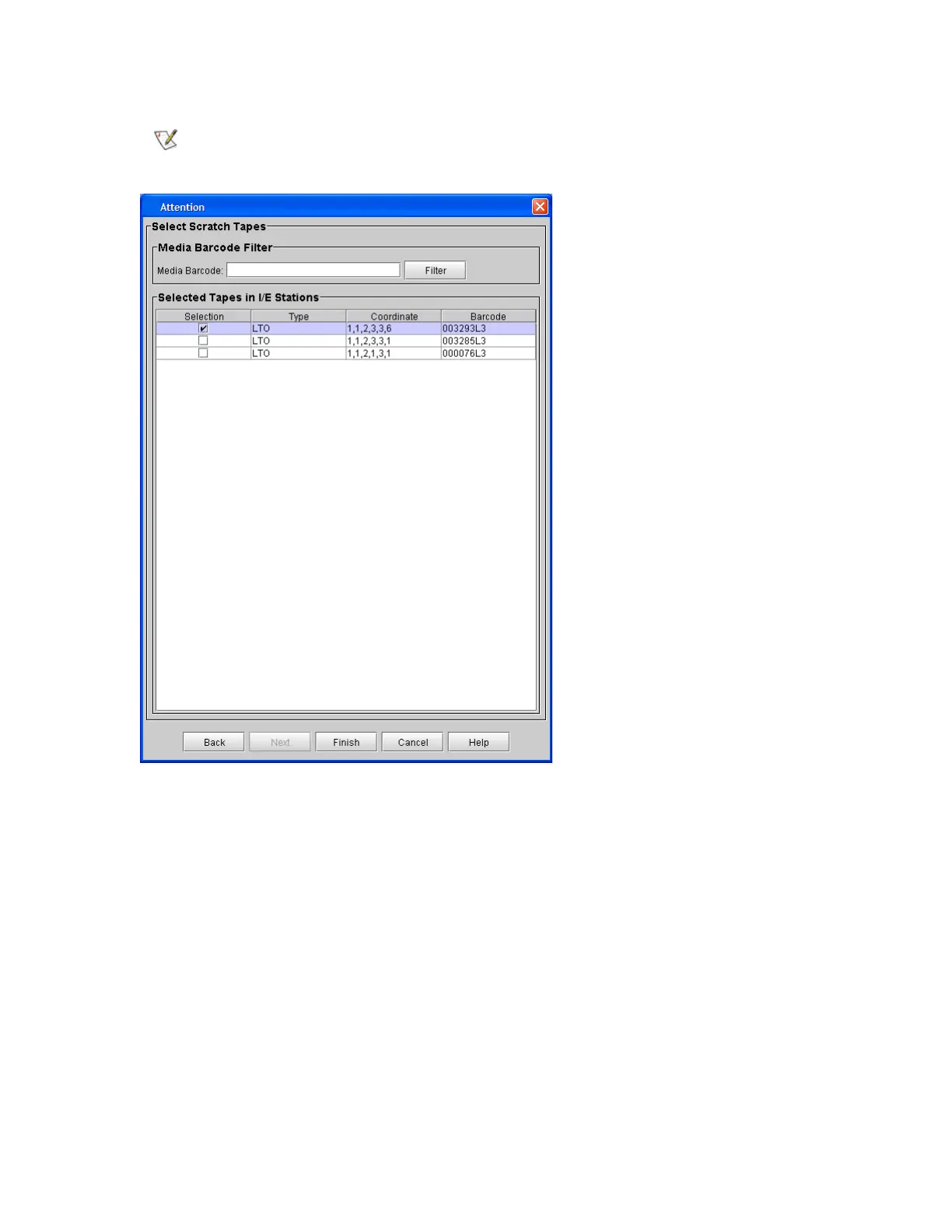 10 Select a “scratch” cartridge of each media type listed on the following dialog box.