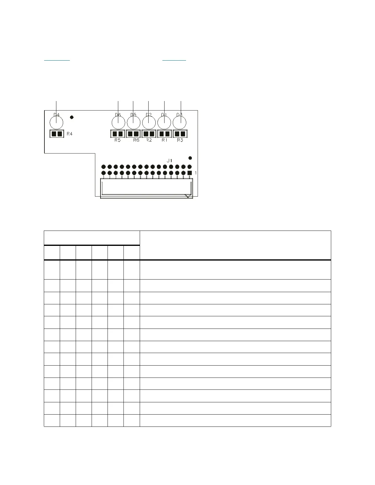 The LBX terminator version 03 has six green LEDs that indicate the presence of modules in the library.