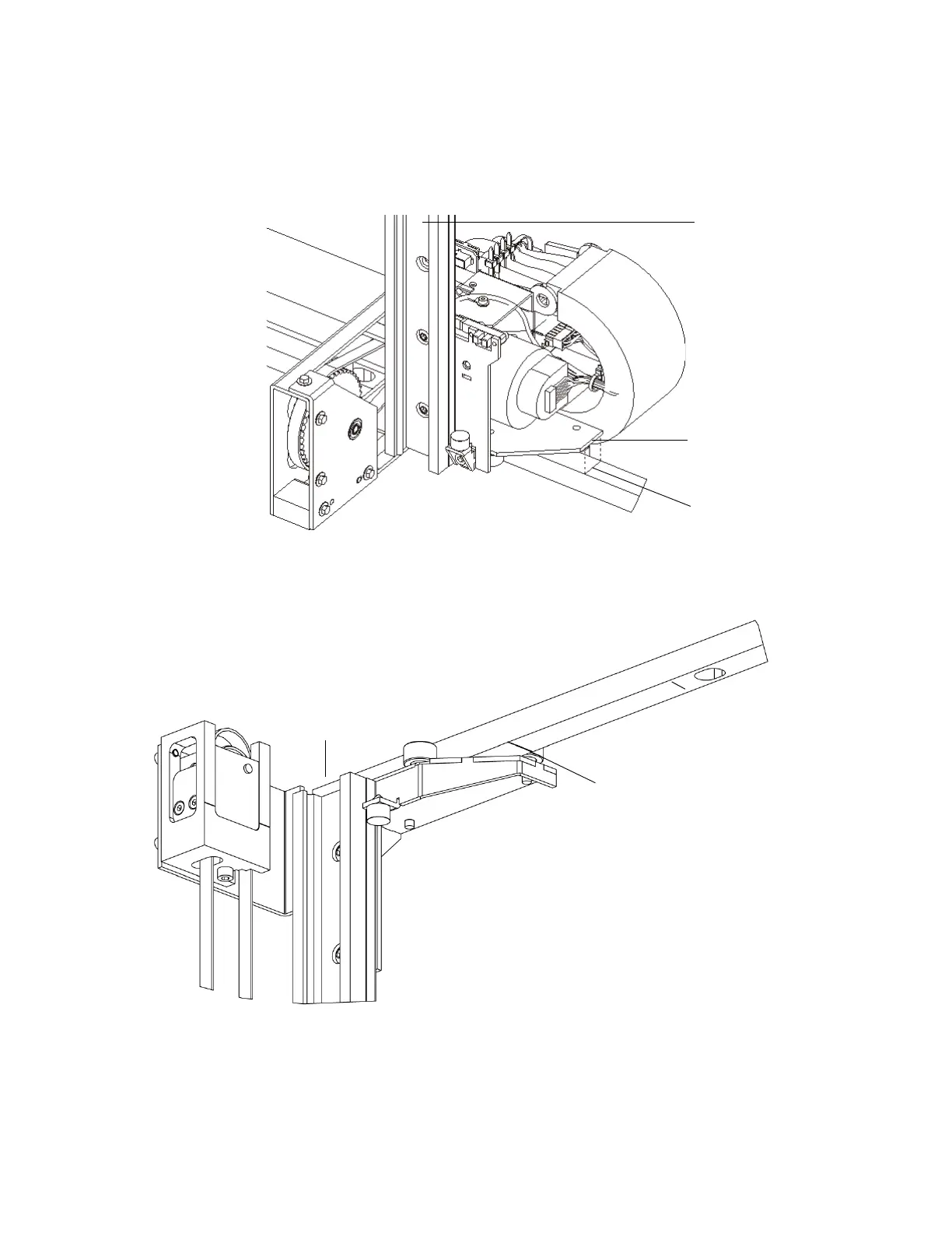 b. Verify that the upper X-axis bearing is within one mm of the scribe mark on the upper X-axis rail.