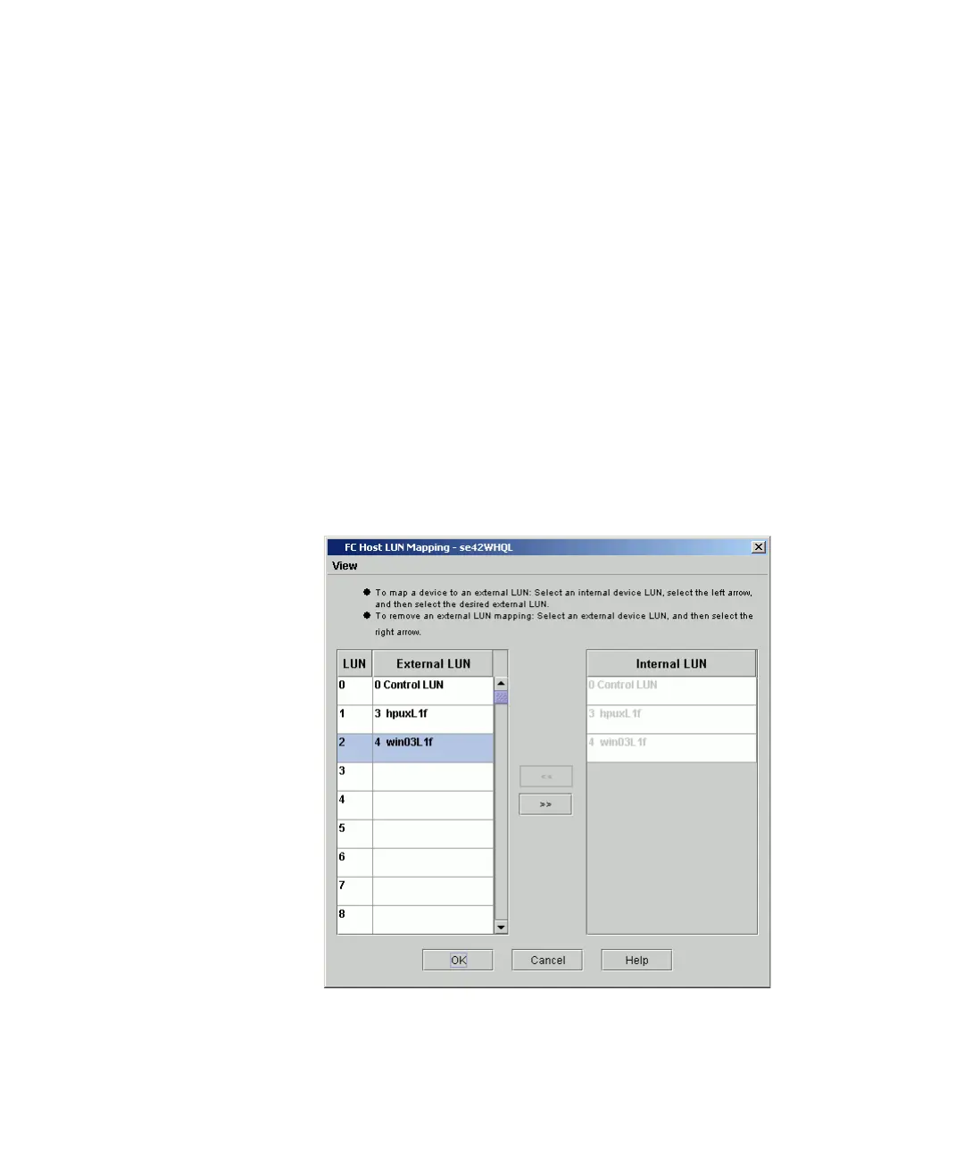names of the devices (drives) are shown. LUN spaces from 0-255 are