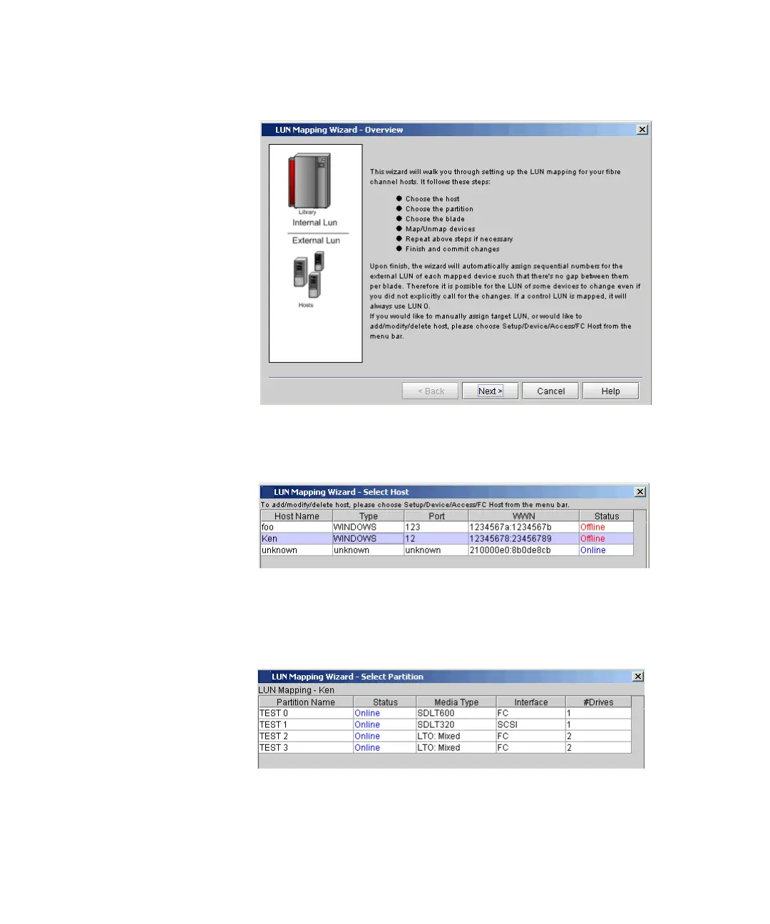 box. The LUN Mapping Wizard – Select Partition dialog box