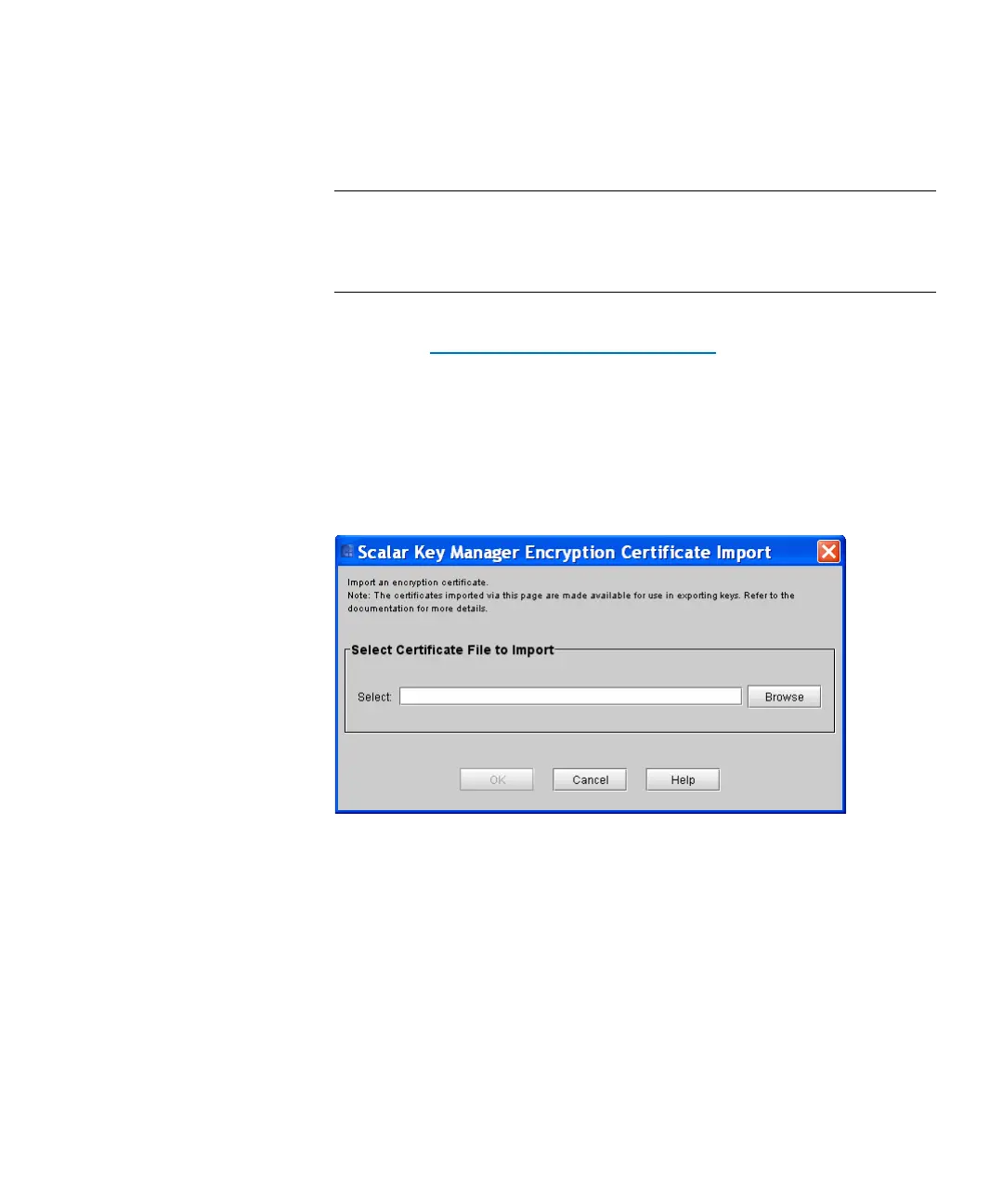 3 Click Browse to locate the saved encryption key certificate file.