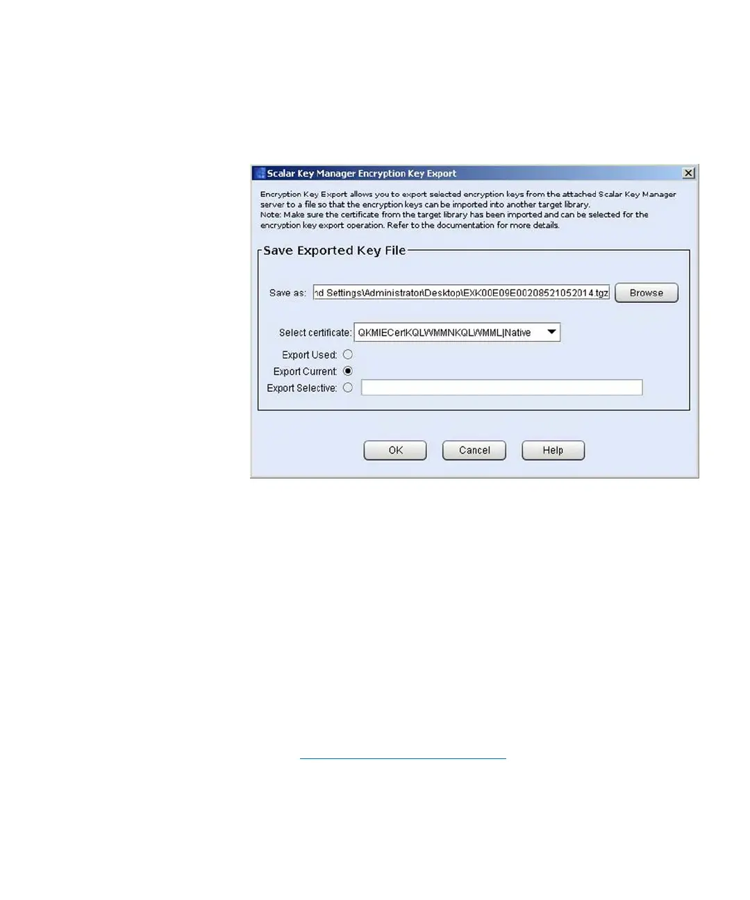 > Export. The Scalar Key Manager Encryption Key Export screen