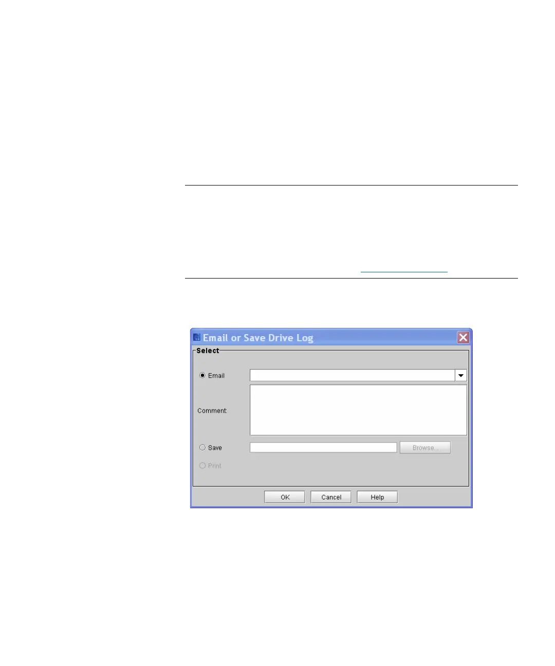 1 From the Drives dialog box, click Get Drive Log. The Email or Save