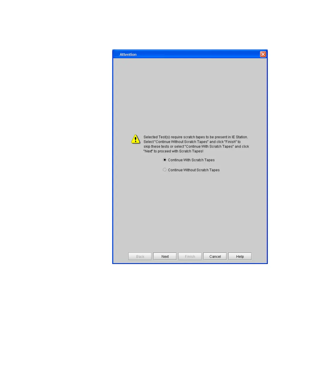 8 Select either Continue With Scratch Tapes or Continue Without
