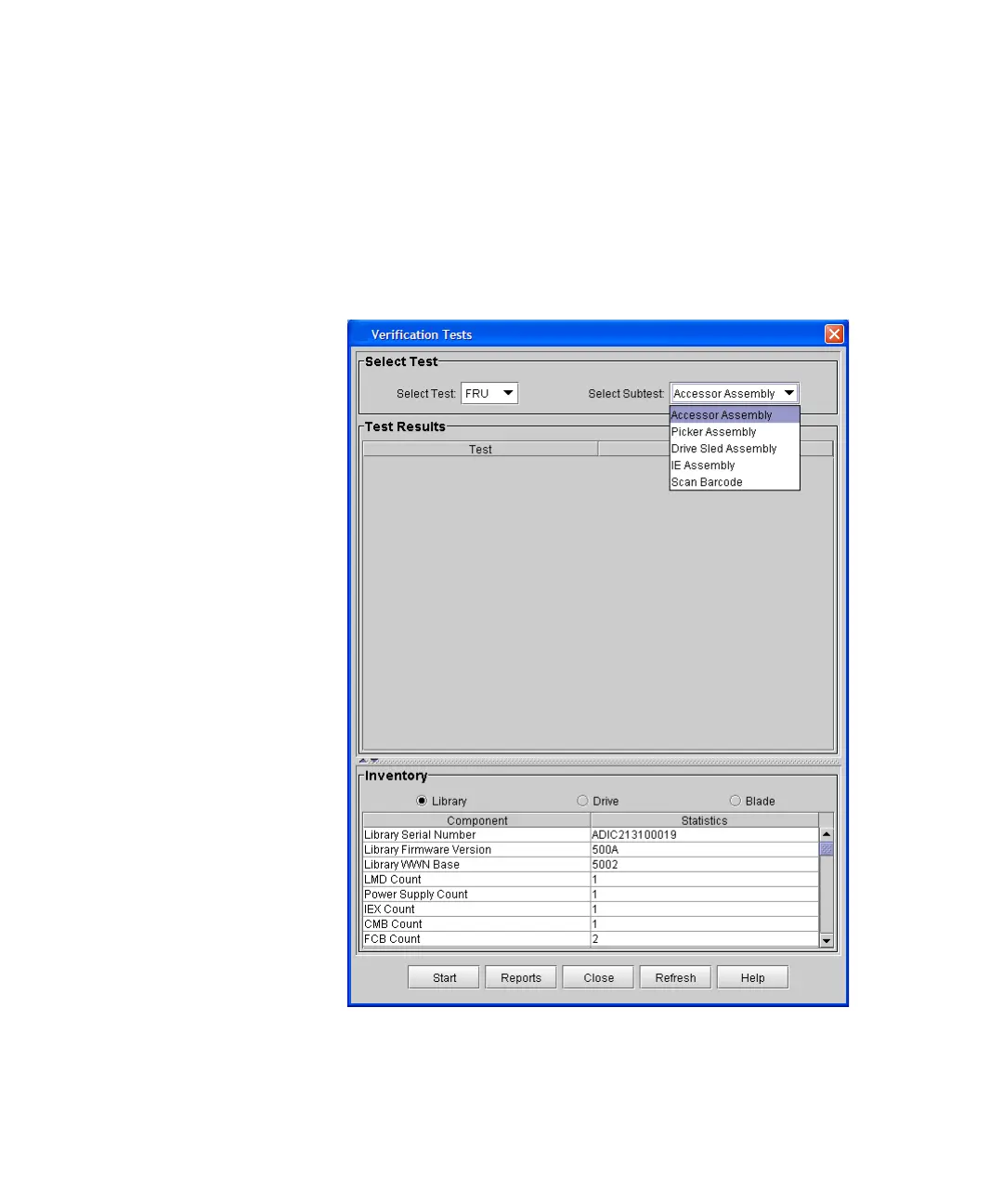 Running FRU Operational Tests from Verification Tests Dialog Box
