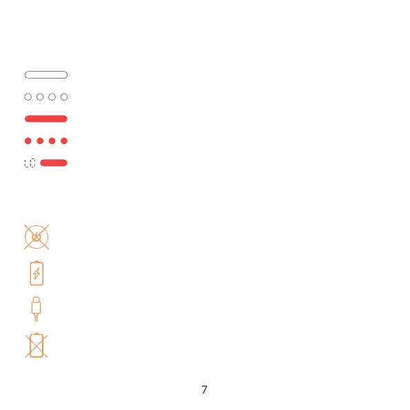 Flashing red - Battery is charging, below 40%