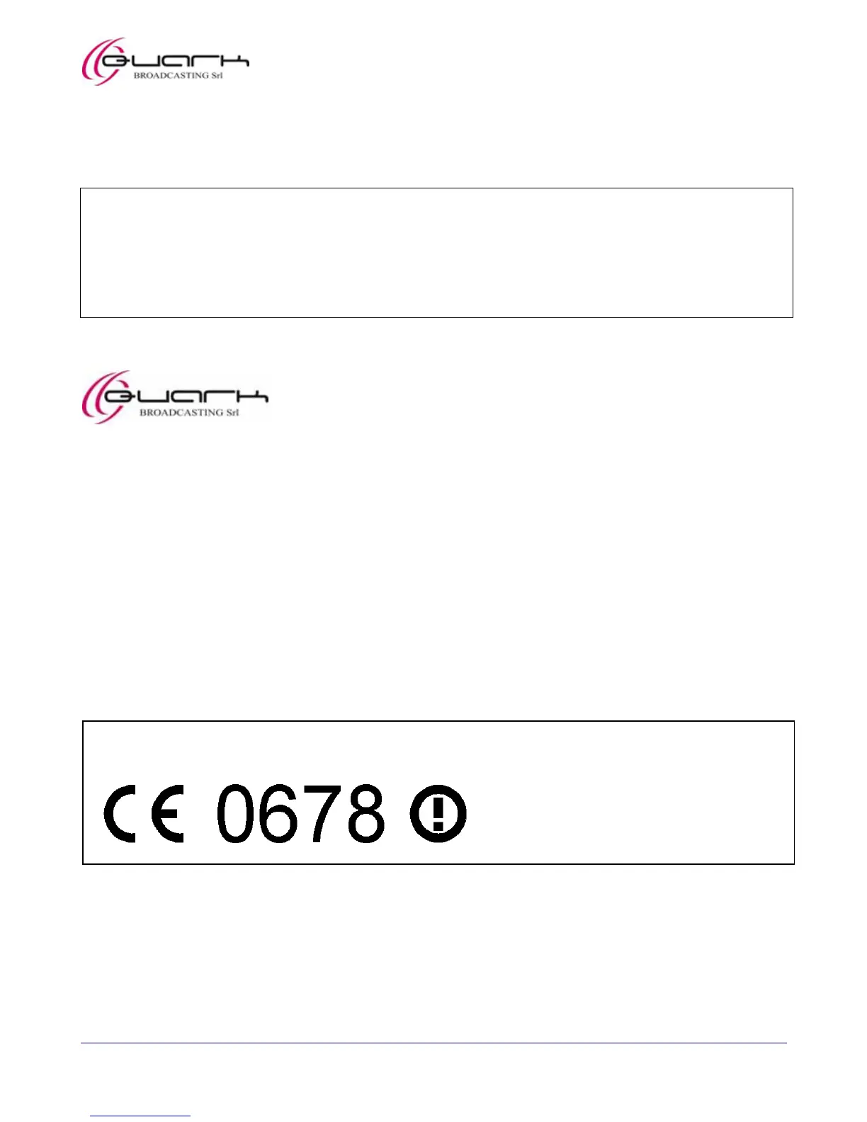 Quark Broadcasting S.r.l. hereby declares that the object of this manual complies with the requirements specified in the 1999/05/EC