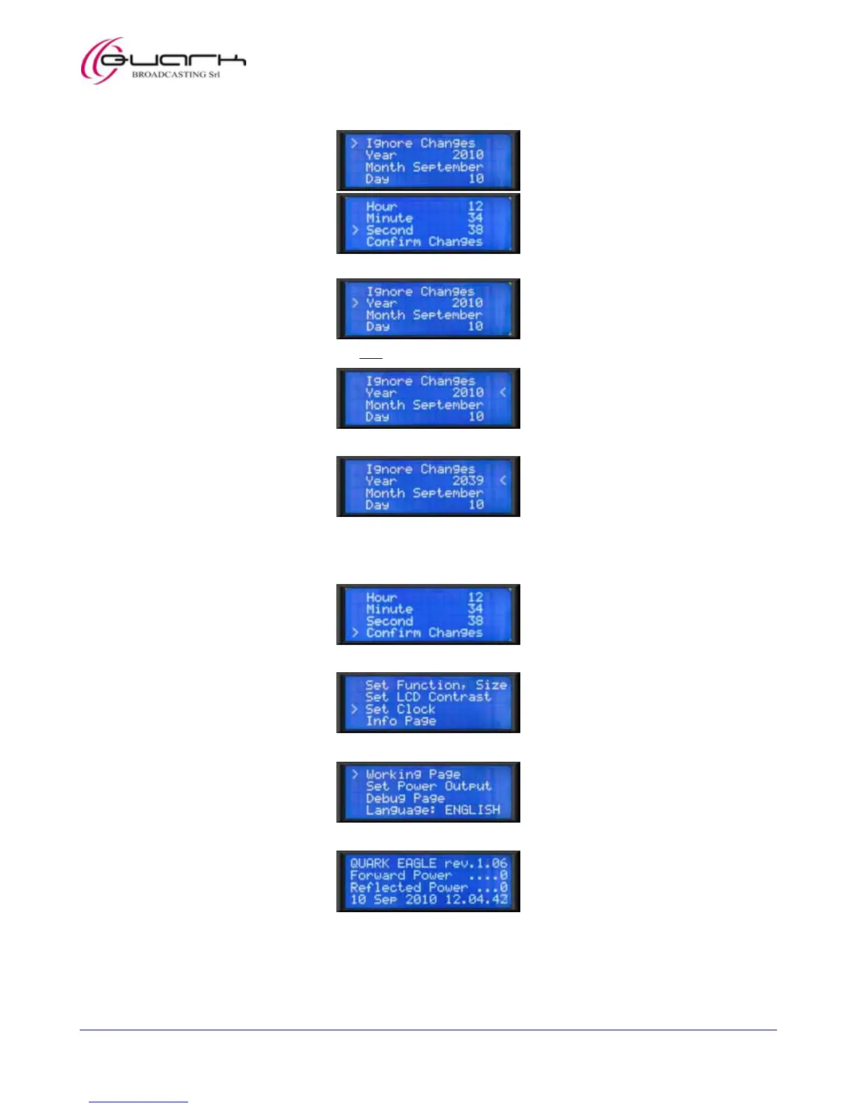 18) Press the knob. The Set Clock menu will be shown (split in two pages):