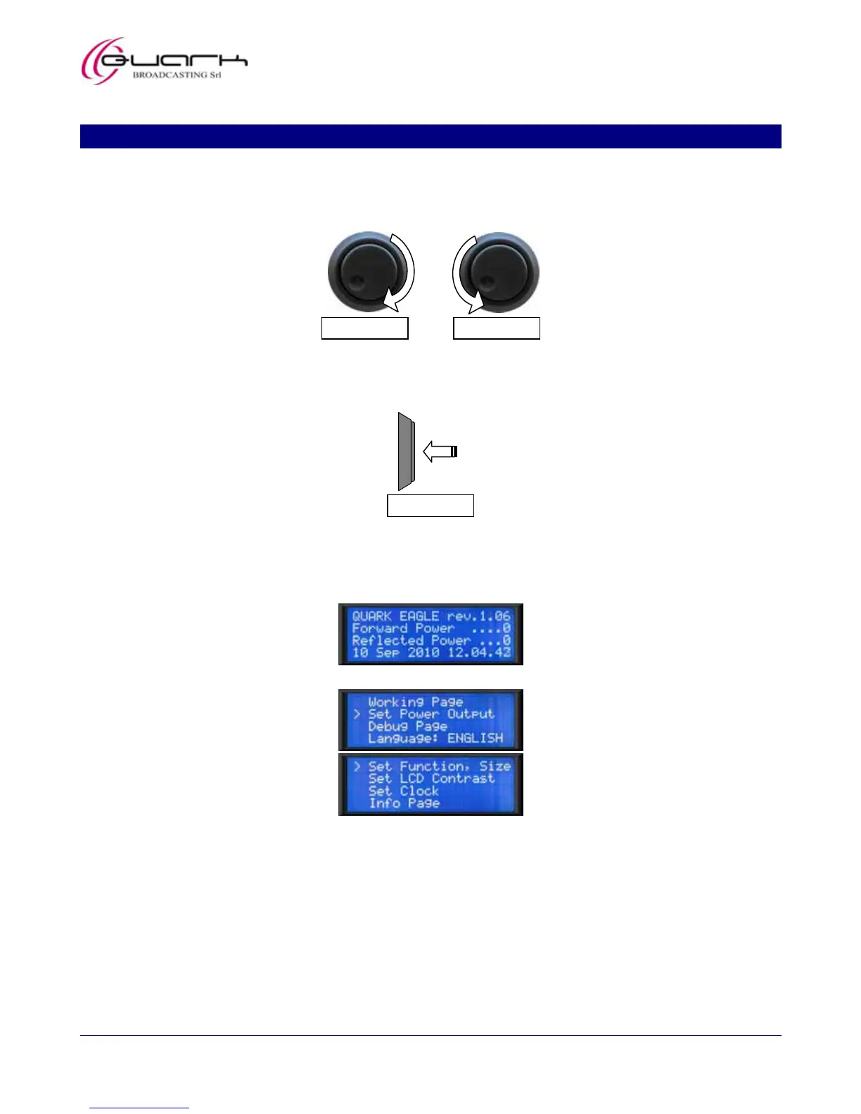 The multifunction knob is used to surf the menu with its submenus and set/check their parameters. It can be used in 3 ways: