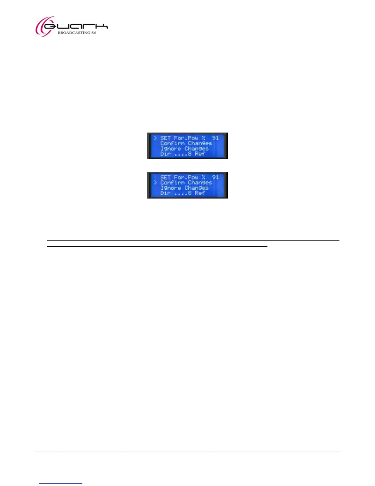 2) Turn the knob counterclockwise in order to move the > cursor to Confirm Changes.