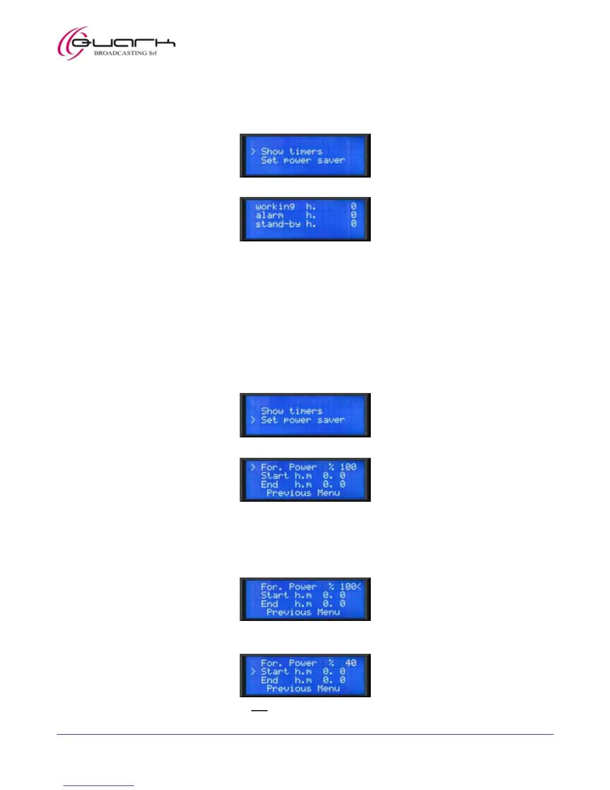 5) To set the power saver starting time, move the cursor to the left of Start h.m: