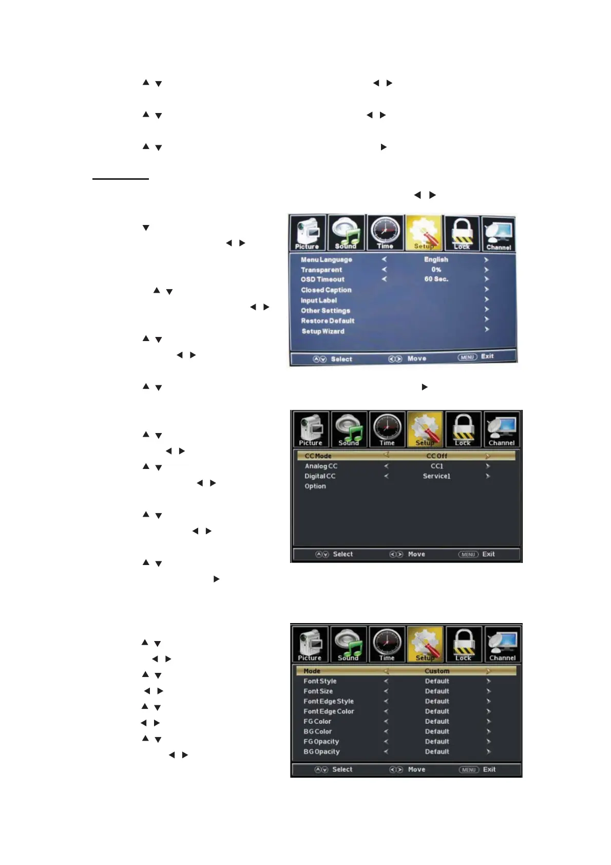4. Press “ / ” button to select “Closed Caption” and press the “ENTER/ ” button to enter