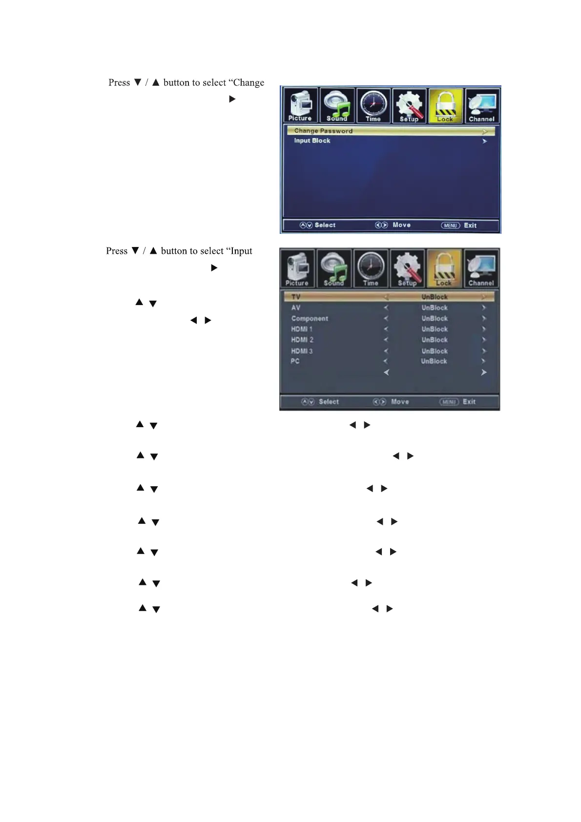 Press “ / ” button to select “AV” and press the “ / ” button to select “Block”