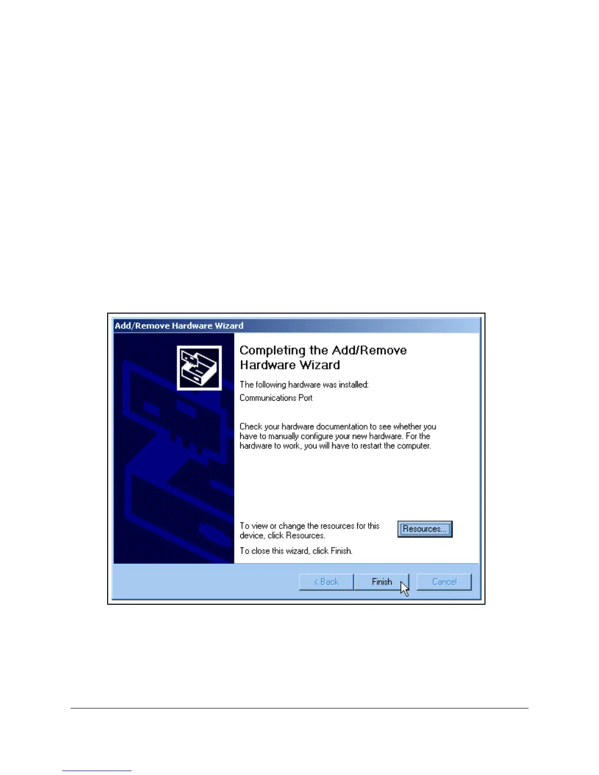 12. Next the “Completing the Add/Remove Hardware Wizard” will appear, click “Finish”.
