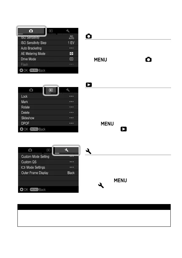 Depending on the settings of the camera, some menu items and setting