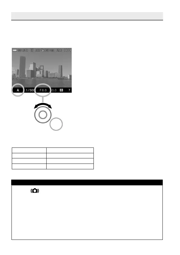 (The aperture value indicator is