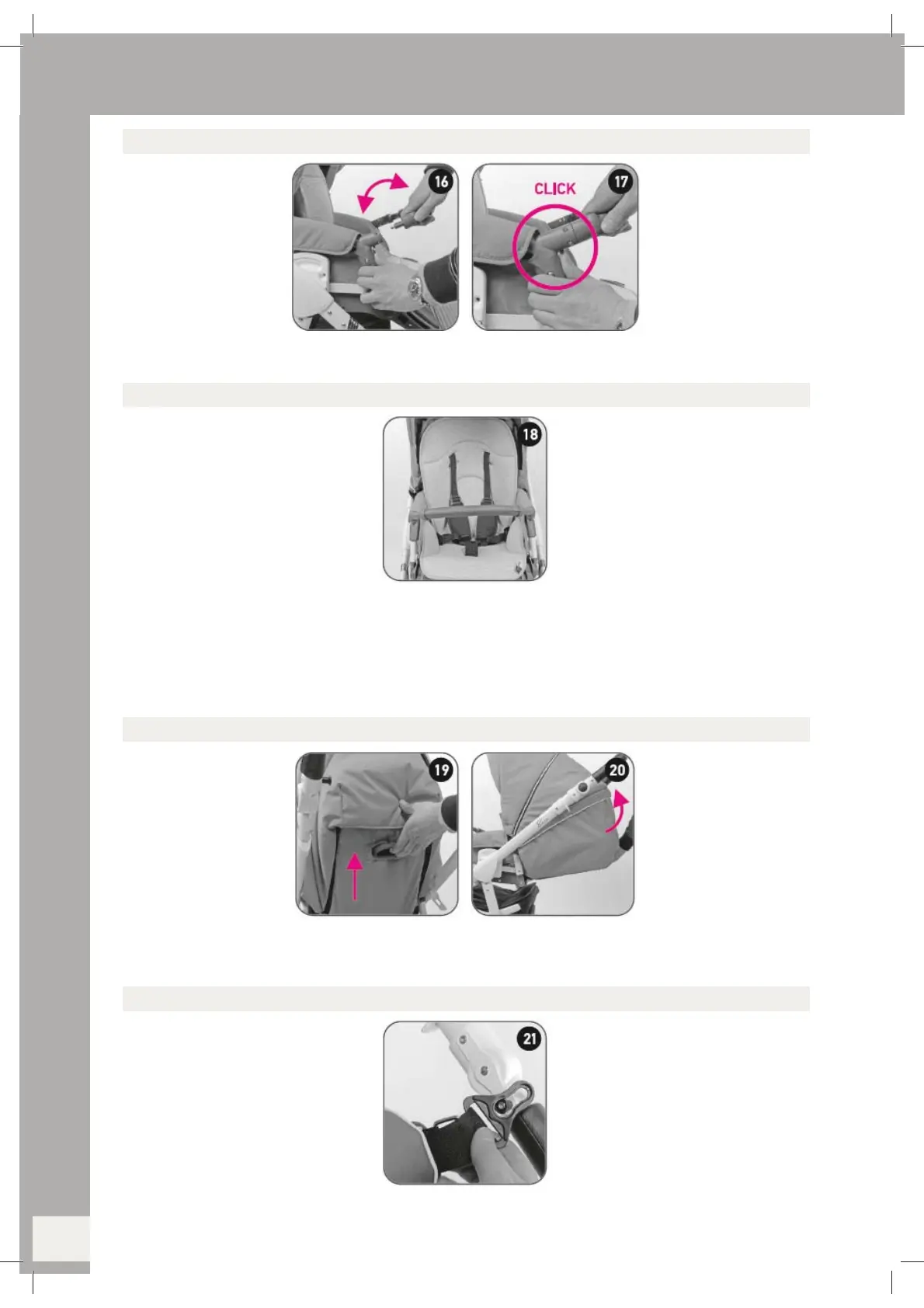 (19). Soulevez le dossier pour le redresser (20). Attention : ne jamais changer la position du dossier avec