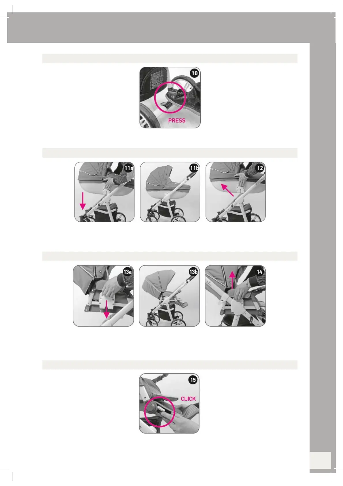 Drücken Sie die Babywanne mit seinen Clips auf den Adapter des Rahmens (11a und 11b) bis der Korb