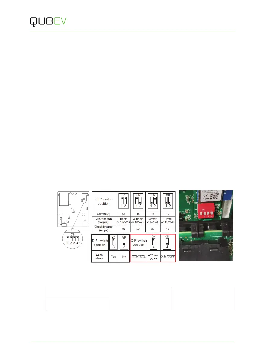 15. If required, set the Control method DIP switch to App and OCPP or to Only OCPP, as