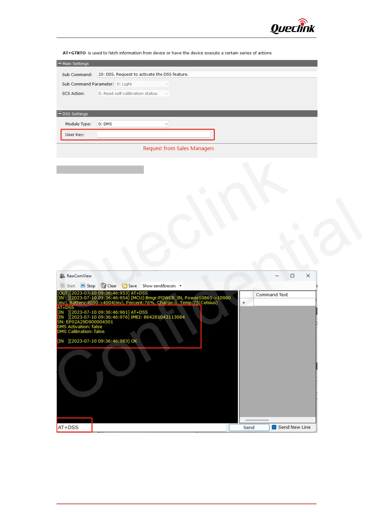 1. Query the calibration state if needed, you can input “AT+DSS” command over local serial port.