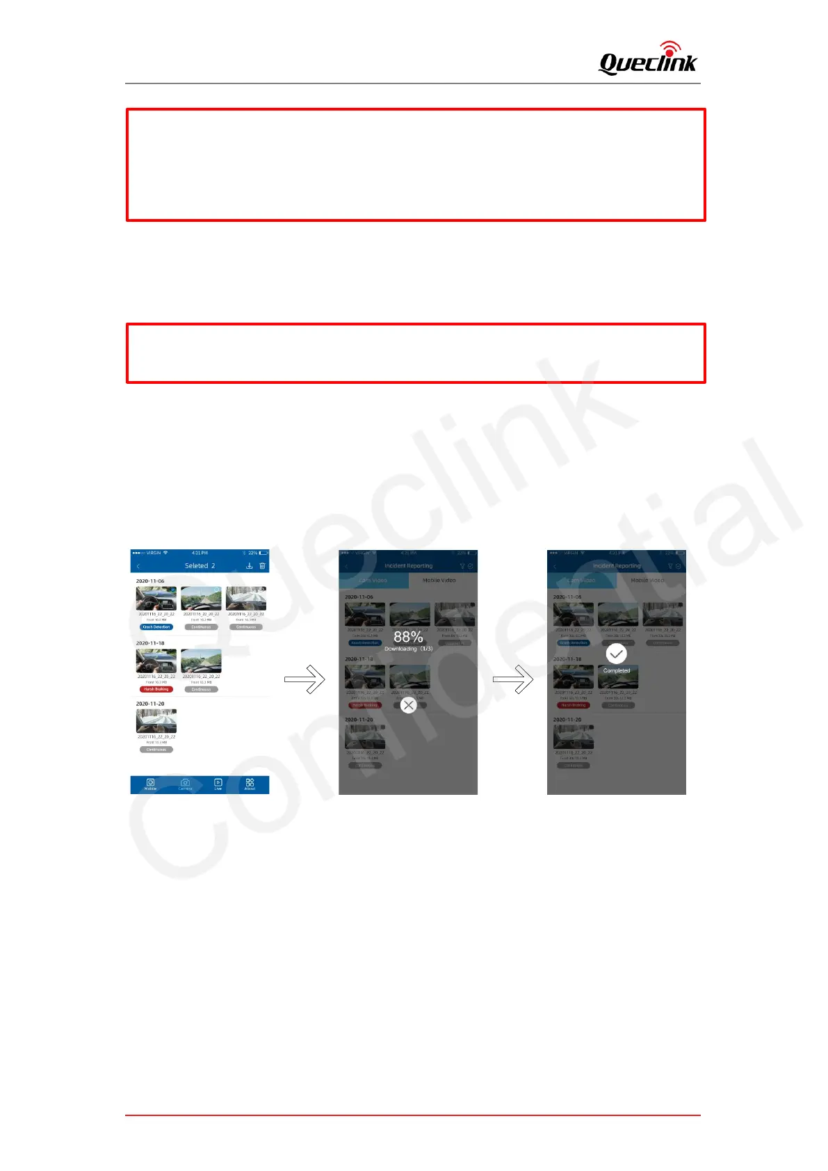 Follow the steps to download videos from the camera.