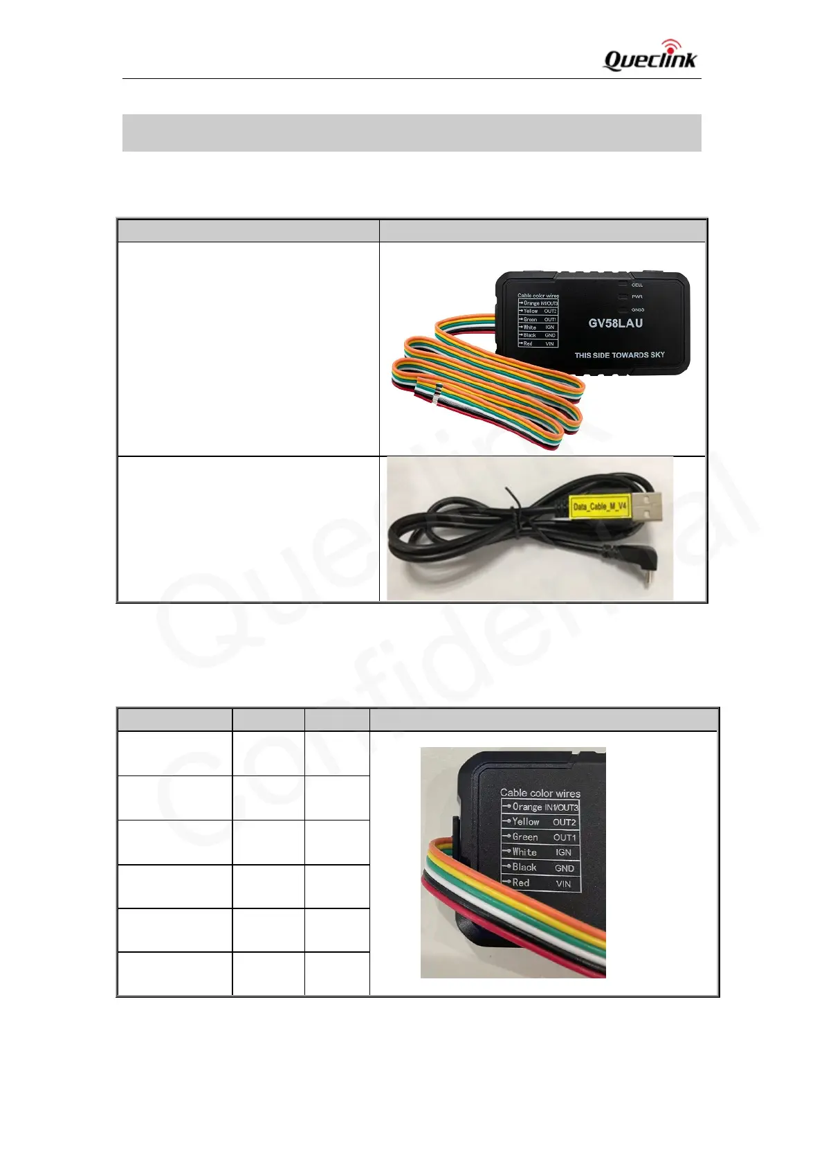 Queclink GV58LAU - 3 Get Started; Parts List; GV58 LAU External Cable Interface