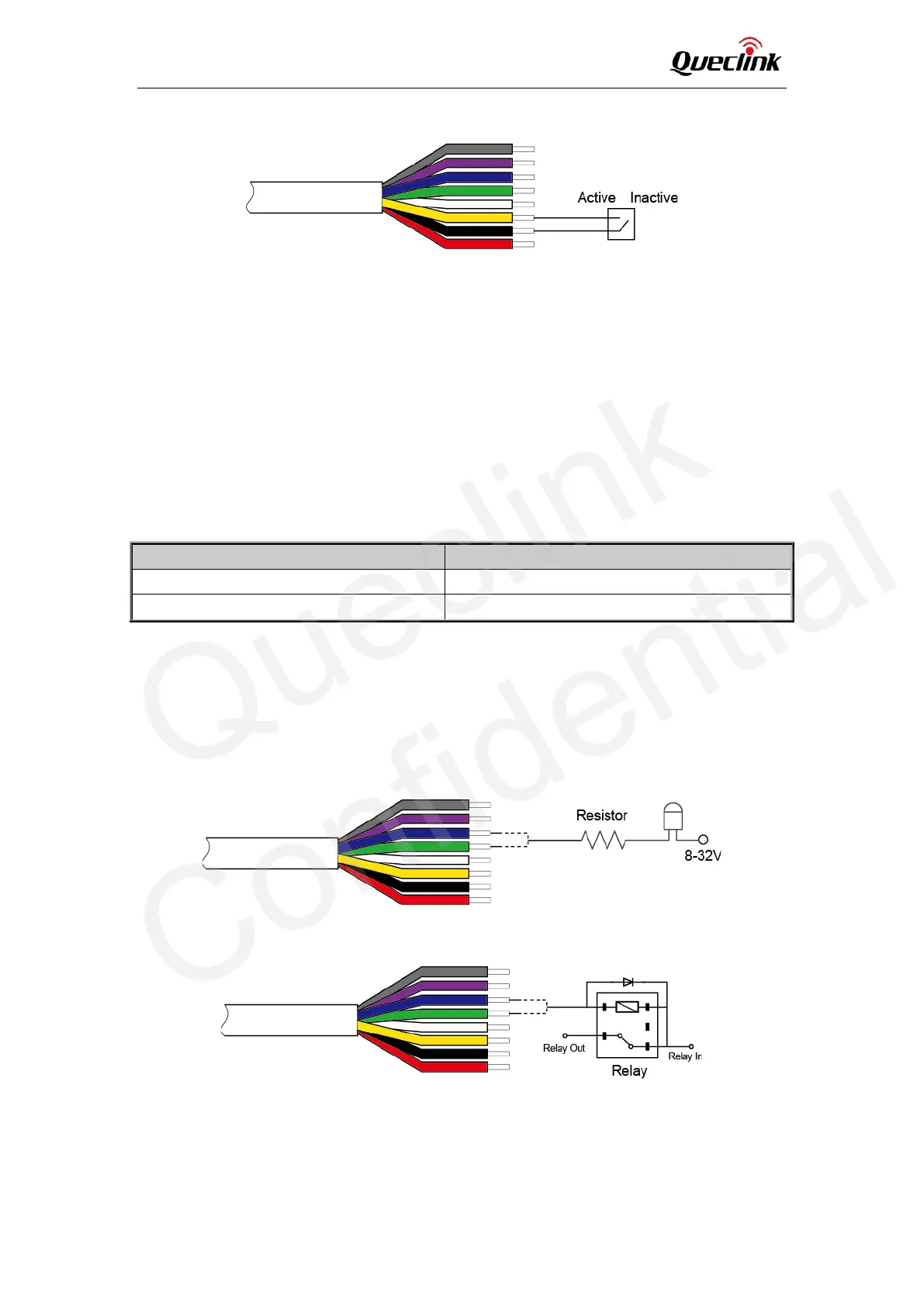 The green wire is low side 150mA max, and the blue wire is low side 150mA max with latch.