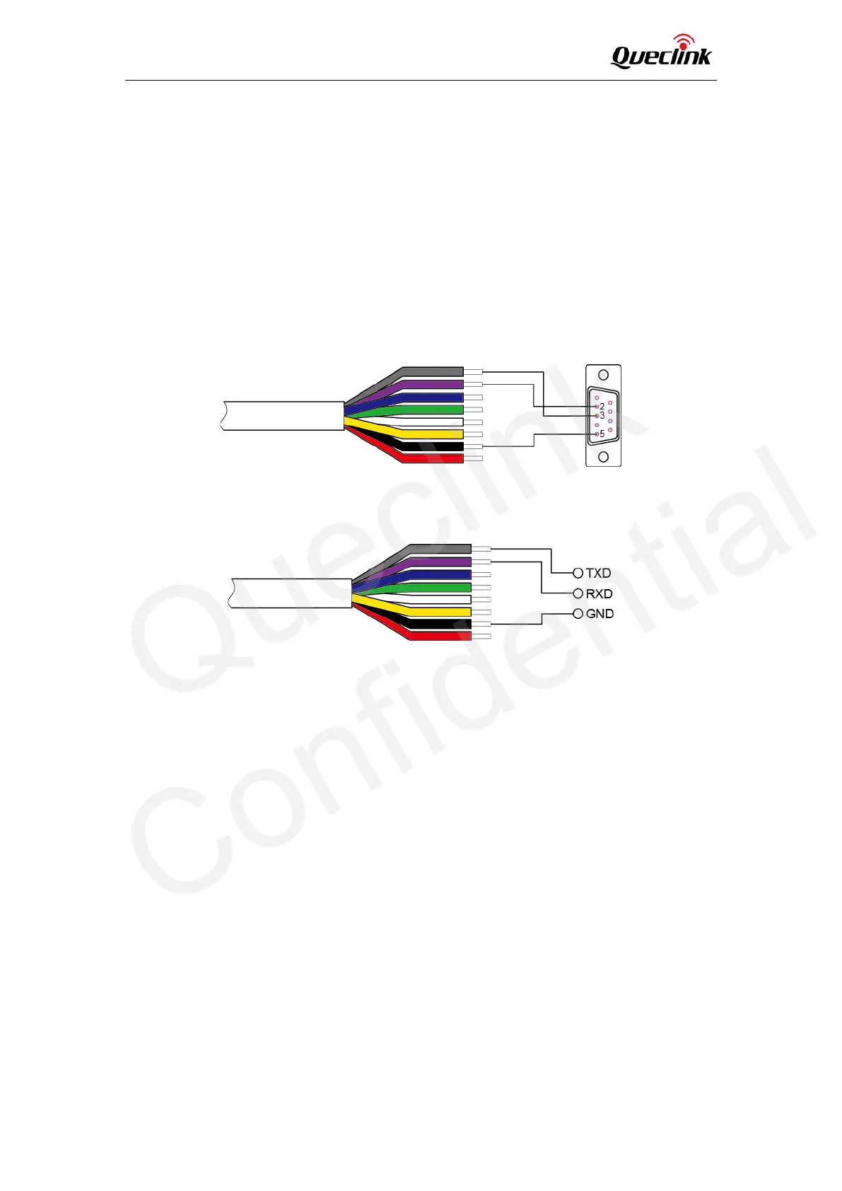 The examples of connections of UART with female DB-9 and with external devices are shown as