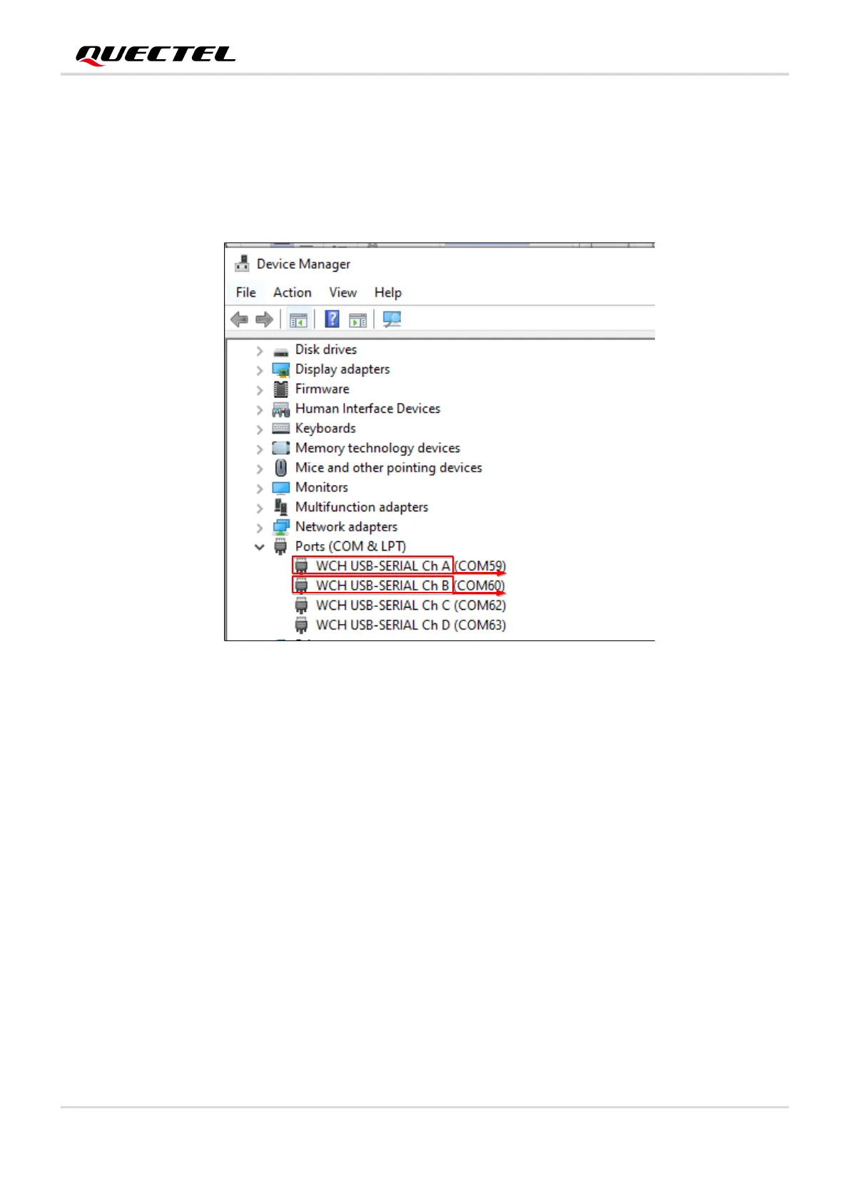 driver. Serial port number can be viewed through the PC Device Manager, such as below: