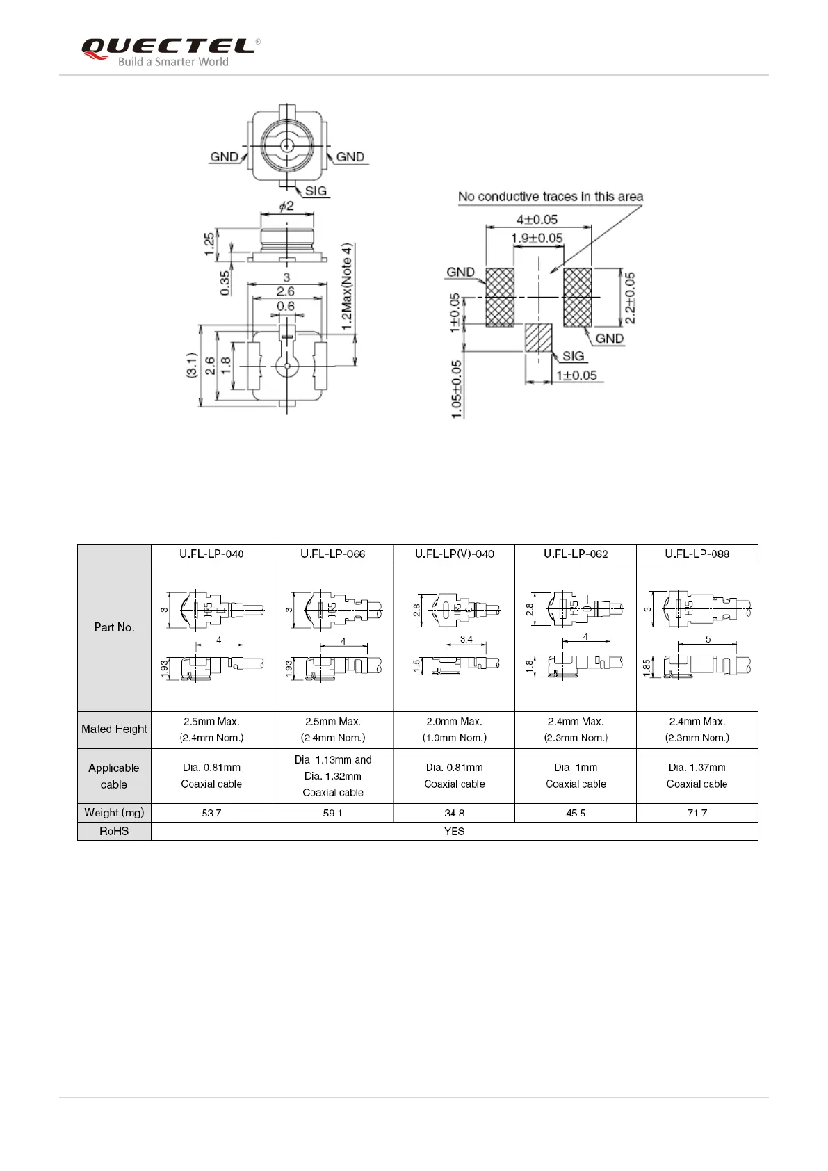 Figure 30: Mechanicals of U.FL-LP Connectors