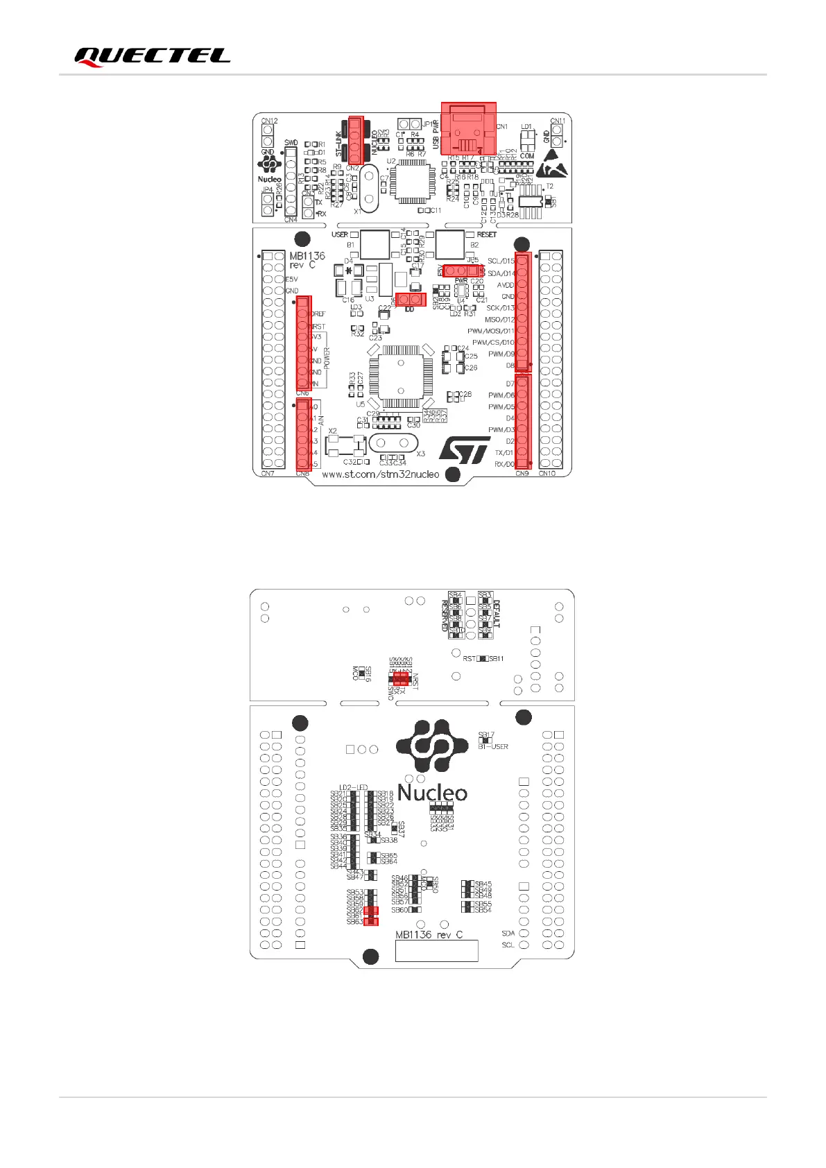Figure 12: STM32 Nucleo-64 Board Modification Diagram (Bottom View)