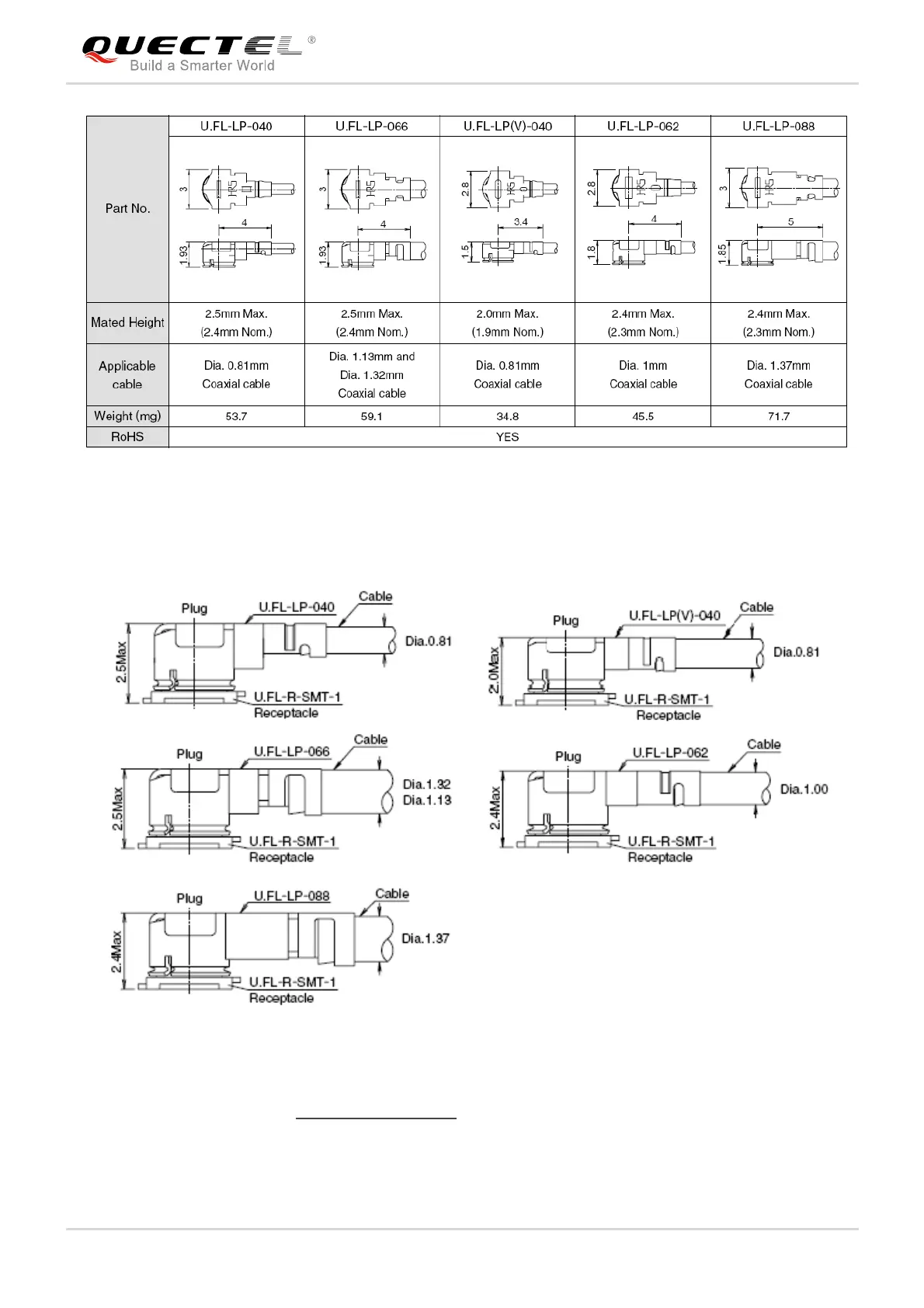 Figure 30: Mechanicals of U.FL-LP Connectors