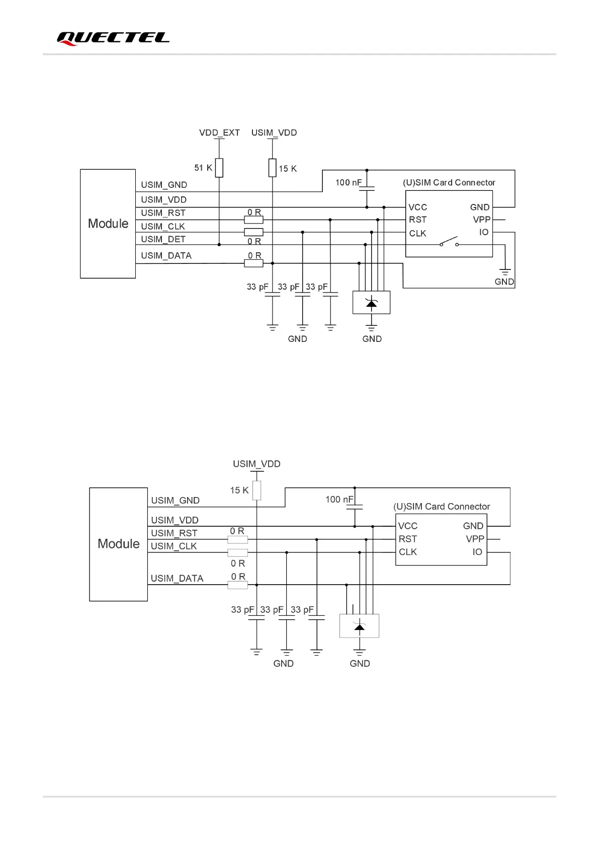If (U)SIM card detection function is not needed, keep USIM_DET unconnected. A reference circuit for