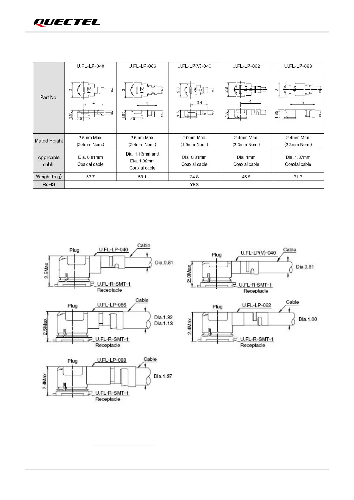 U.FL-LP serial connectors listed in the following figure can be used to match the U.FL-R-SMT.