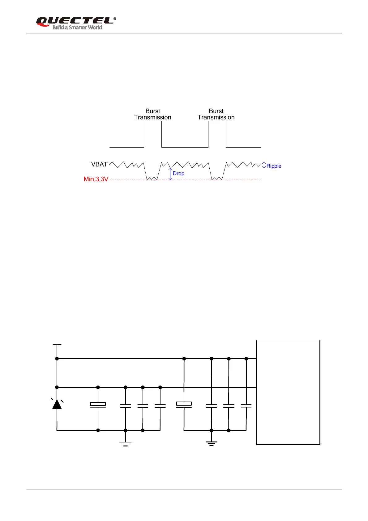never drop below 3.3V. The following figure shows the voltage drop during burst transmission in 2G