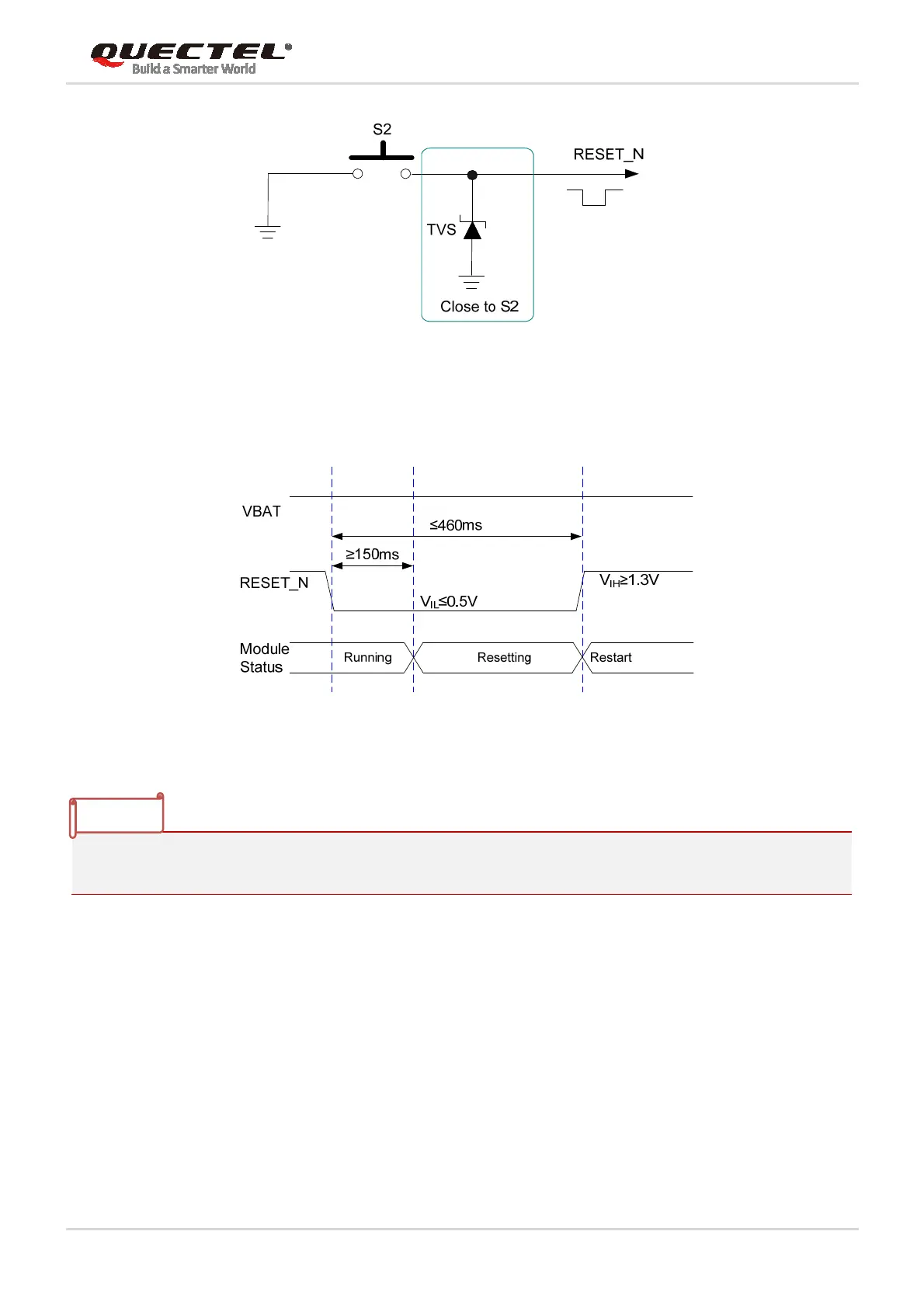 1. Use RESET_N only when failed to turn off the module by AT+QPOWD command and PWRKEY pin.