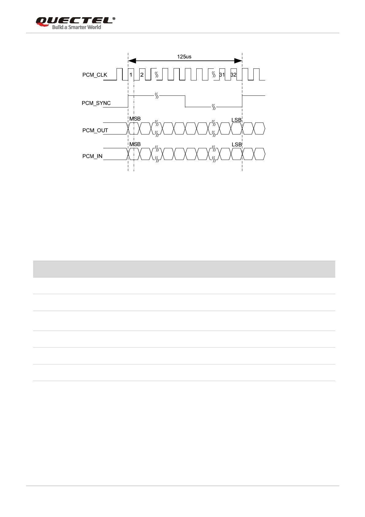 short frame synchronization format with 2048KHz PCM_CLK and 8KHz PCM_SYNC. Please refer to