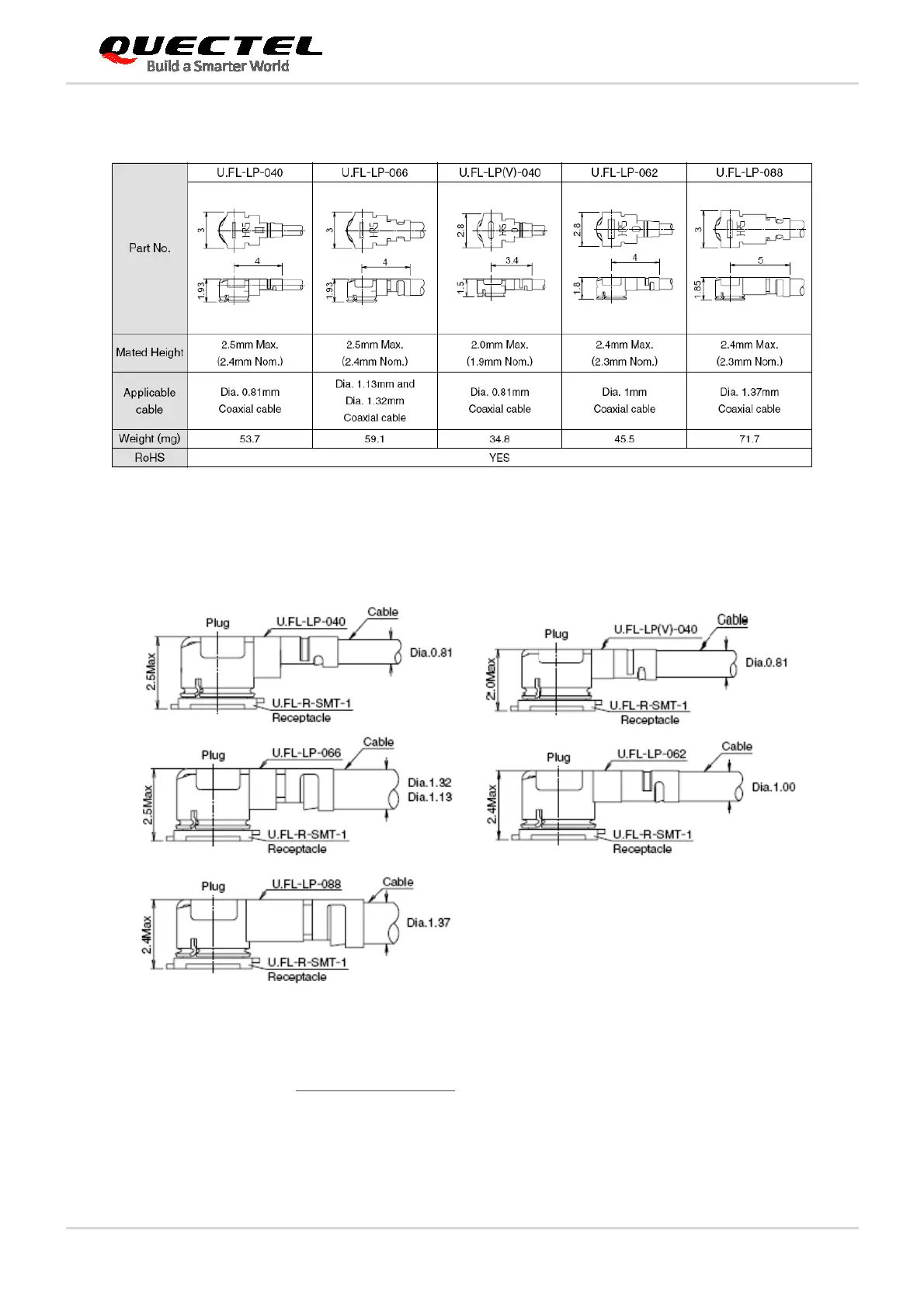 U.FL-LP serial connectors listed in the following figure can be used to match the U.FL-R-SMT.