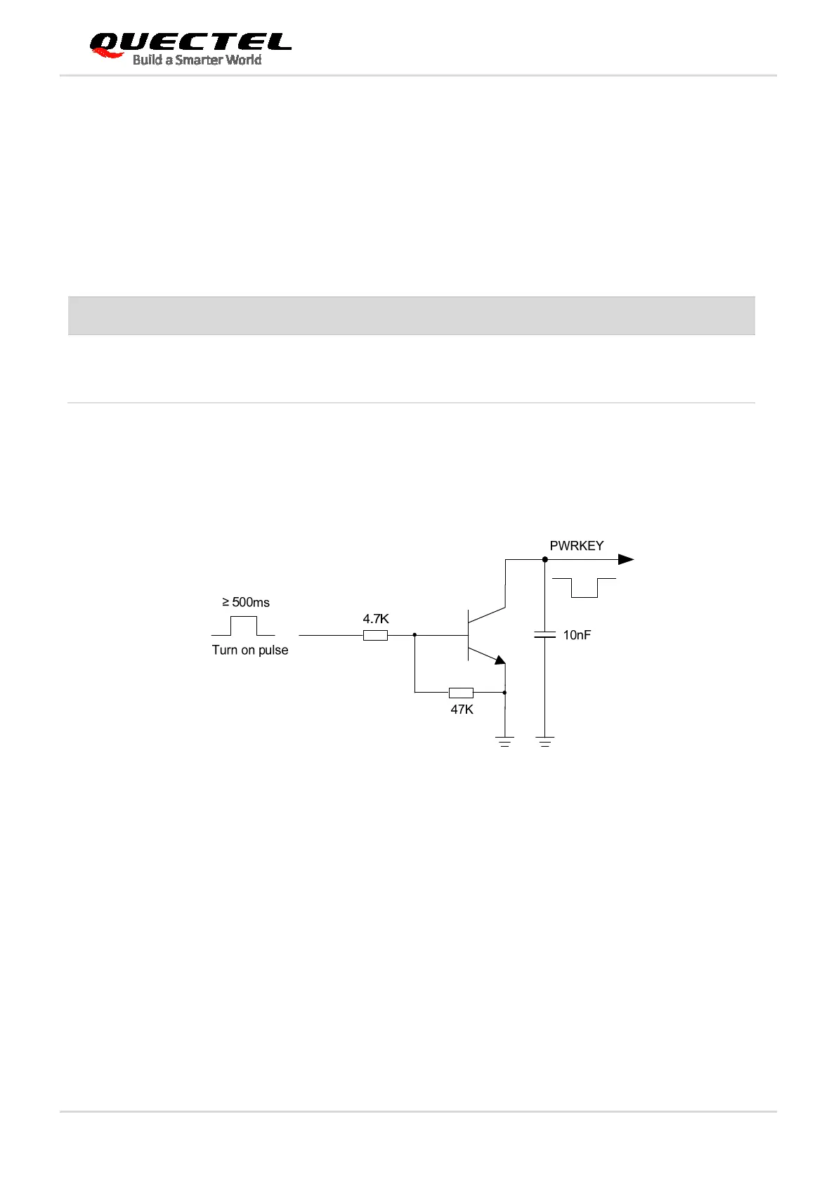 PWRKEY pin to a low level for at least 500ms. It is recommended to use an open drain/collector driver to